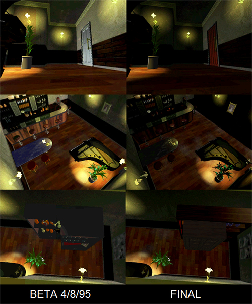 Las siguientes salas no presentan grandes cambios con respecto a la versión final del juego pero aun así comentaremos datos curiosos sobre ellas. Empezamos por estas: