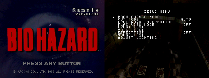 Esta es la versión del 31 de enero de 1996, dos meses antes de que saliera el juego al mercado. Supuestamente esta es la versión que recibía la prensa para hacer las review para las revistas, etc. Apenas tiene diferencias con la versión final salvo que algunos objetos están cambiados de sitio, las puertas tienen unos números extraños y la función del modo Debug pulsando el botón Select. Con este menú se puede trastear el juego y hacer cosas como ir a la sala del juego que queramos, tocar la iluminación, saltar a ciertos eventos y demás. Los protagonistas tienen salud infinita.
