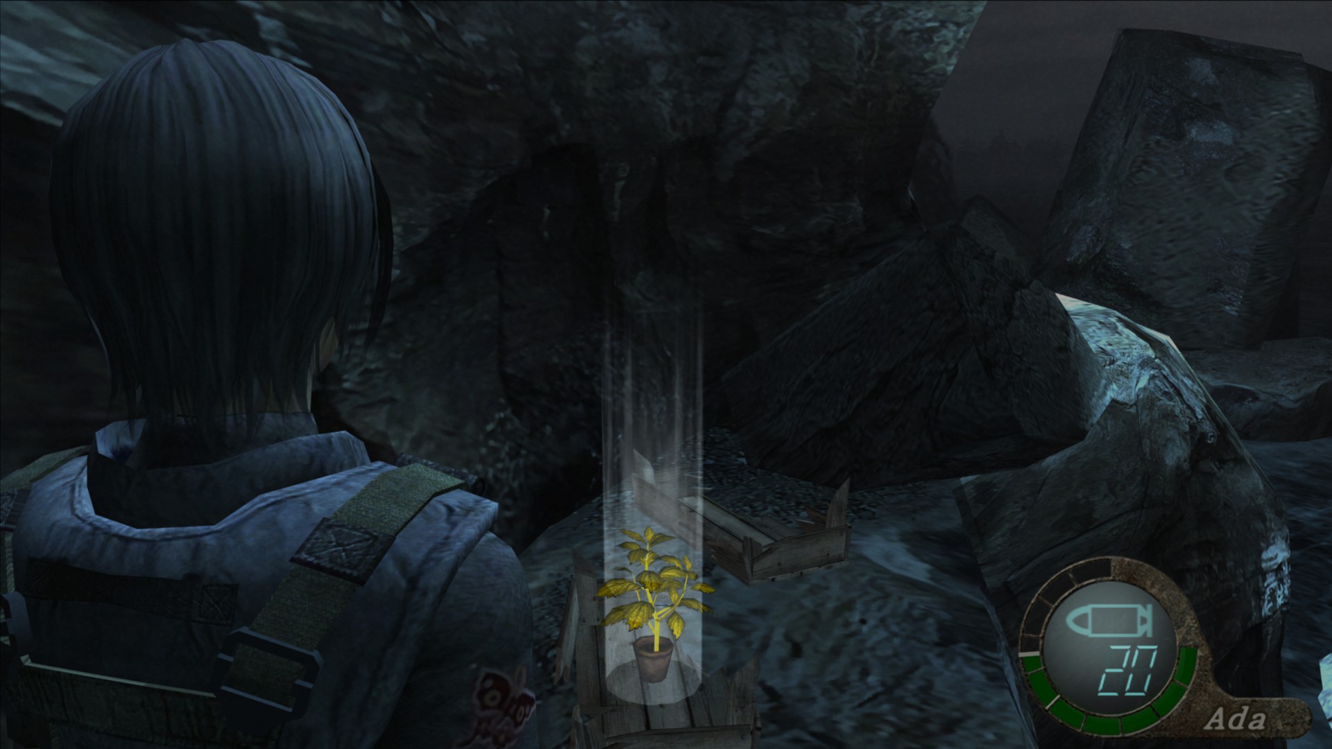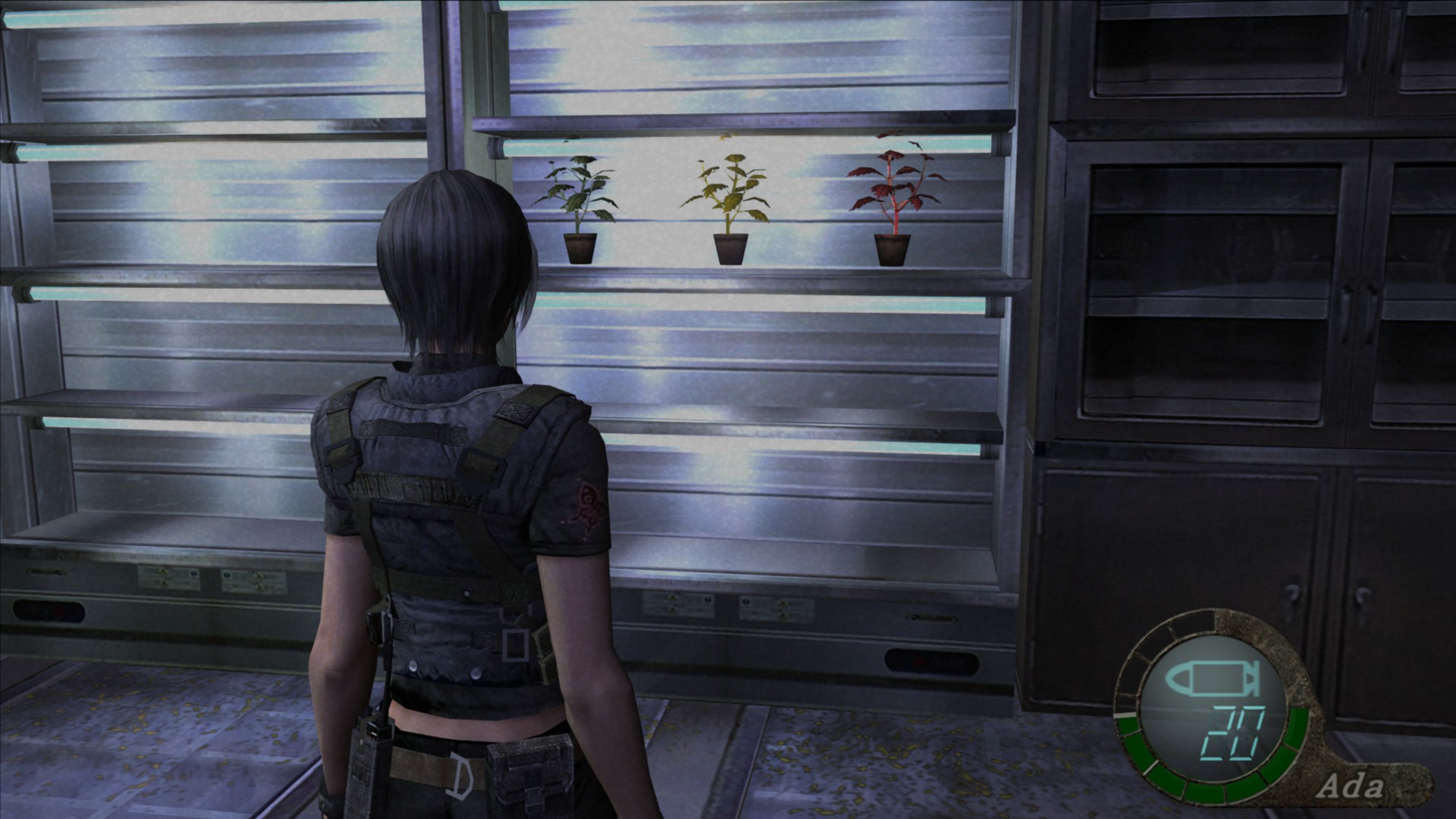En la zona donde obtienes la primera muestra de la Plaga, entra en la sala de autopsias en la cual aparecía el primer Regenerador en la historia principal. Rompe el cristal de la vitrina que habrá a tu derecha para poder coger la hierba amarilla.
