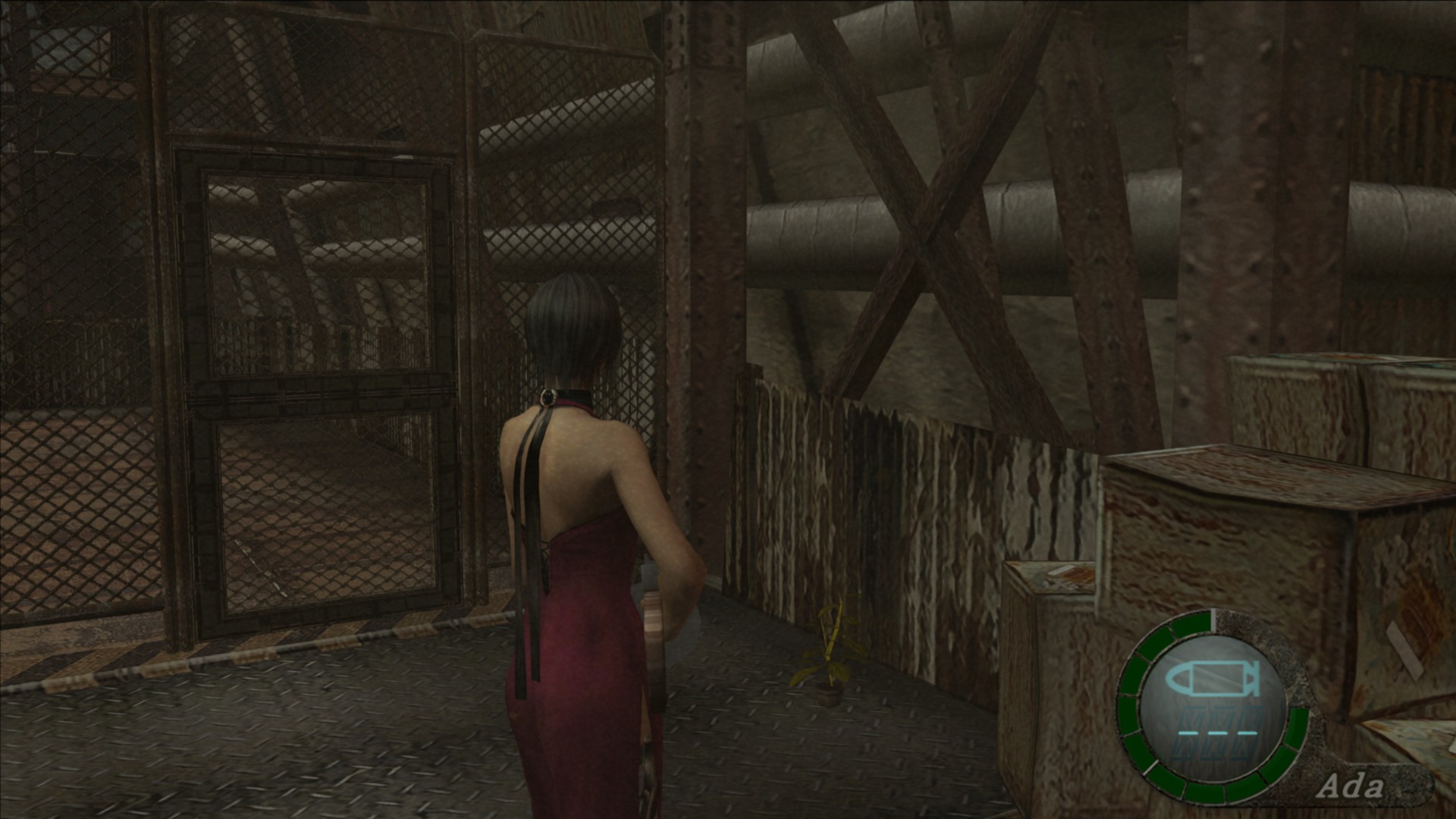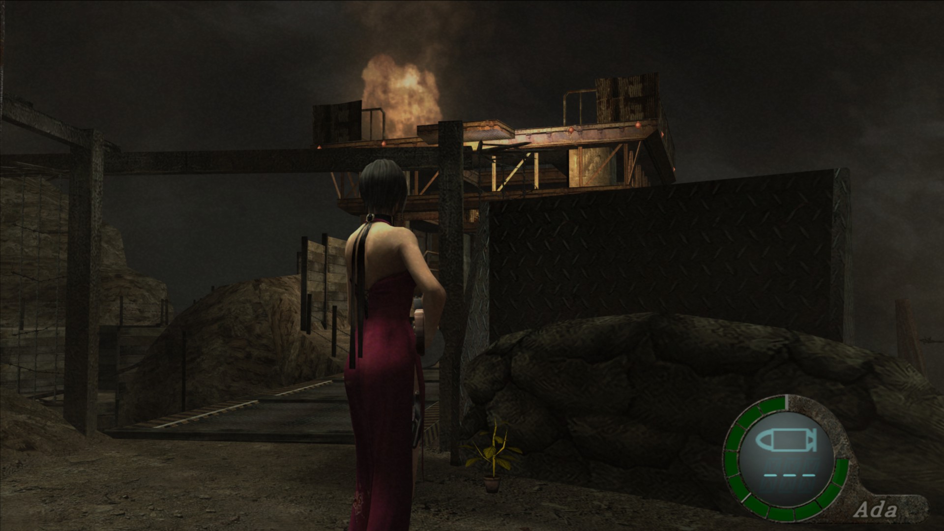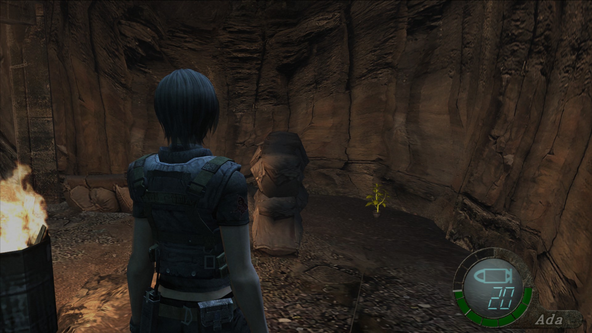 Cruza la puerta por la cual sale el primer Ganado con Gatling y encontrarás otra hierba tras la pequeña trinchera que hay frente a la puerta.