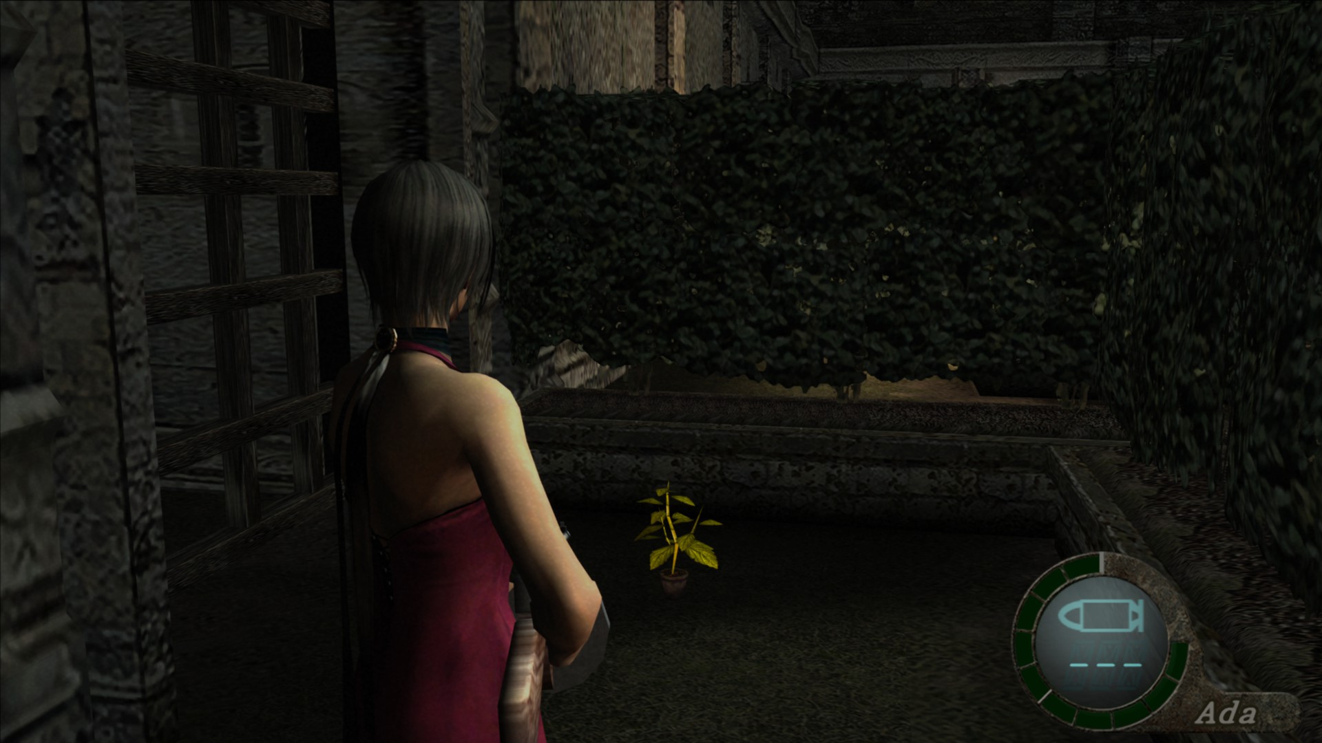 En un rincón del laberinto de setos, en el jardín del castillo. Exactamente en la misma posición en la que encontrábamos otra hierba amarilla durante la historia principal con Leon.