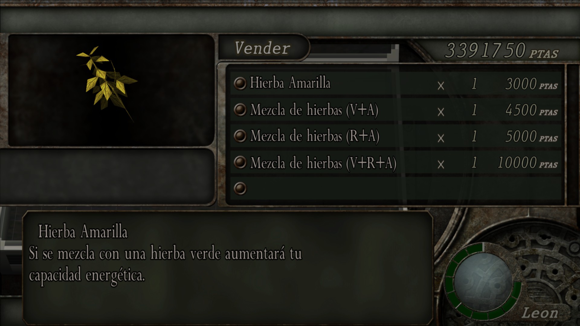 Nota: En el modo Assignment Ada no hay Buhonero, por lo que solo podrás vender hierbas y otros objetos durante la historia principal y el modo Separate Ways.